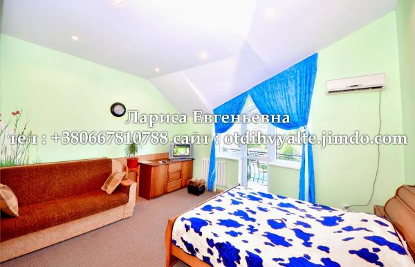 3-х этажн. дом до 3 человек в номере, ул. Садовая, состоящий из 9 видовых номеров, центр Ялты, до набережной 5 мин., до пляжа 10 мин. пешком, прекрасная панорама на море и горы, закрытый бассейн, сауна, массажный кабинет, бильярд, каминный зал, площадка для отдыха с мангалом, кондиционеры, автономное отопление, гор. вода круглосуточно, холодильники, тв. кабельное, Wi-Fi, кухня для самостоятельного приготовления, можно заказать трех разовое питание, парковка во дворе.