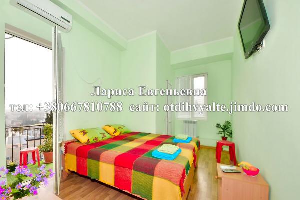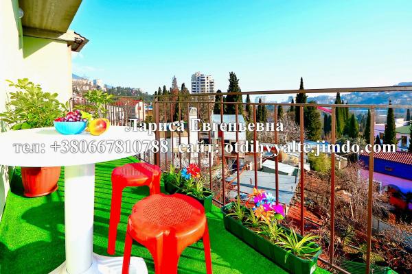 3-х этажн. дом до 3 человек в номере, ул. Садовая, состоящий из 9 видовых номеров, центр Ялты, до набережной 5 мин., до пляжа 10 мин. пешком, прекрасная панорама на море и горы, закрытый бассейн, сауна, массажный кабинет, бильярд, каминный зал, площадка для отдыха с мангалом, кондиционеры, автономное отопление, гор. вода круглосуточно, холодильники, тв. кабельное, Wi-Fi, кухня для самостоятельного приготовления, можно заказать трех разовое питание, парковка во дворе. Цены сезонные-от2000-5500р.сут. За номер На ваши даты цену уточняйте по т+7978-532-7932 -есть Ватсап и телеграм. действующая цена на текущий месяц на моём сайте, возможности торга по телефону или E-mail, цены на праздники уточняйте, подробное описание и другие варианты жилья на сайте: Ялта Лариса Евгеньевна, адрес моего сайта смотри на водяной строке на фотографиях квартиры.