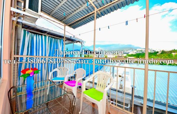 Гостевой дом 2-3 человека в комнате, ул. Кирова, р-н церкви Св. Великомученика Ф. Тирона, состоящий из 8 видовых номеров, центр Ялты, до пляжа, набережной 15 мин. пешком, прекрасная панорама на город и горы, в комнате: 2 односпальные кровати, шкаф, тв. кабельное, Wi-Fi, электрочайник, кондиционер, сан. узел, душ, гор. вода круглосуточно, оборудованная общая кухня, стиральная машина, общий видовой балкон с мебелью для отдыха, парковка машины на улице или охраняемой стоянке. Цены сезонные-от1500-5000р/сут. За номер На ваши даты цену уточняйте по т+7978-532-7932 -есть Ватсап и телеграм. действующая цена на текущий месяц на моём сайте, возможности торга по телефону или E-mail, цены на праздники уточняйте, подробное описание и другие варианты жилья на сайте: Ялта Лариса Евгеньевна, адрес моего сайта смотри на водяной строке на фотографиях квартиры.