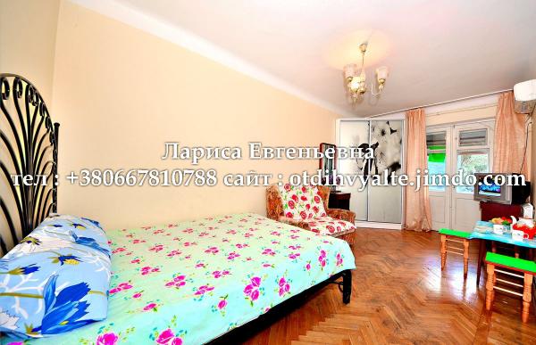 1 комн. квартира до 3 человек, ул. К. Маркса 11, набережная Ялты, до пляжа 4 мин. пешком, двухспальная кровать и диван, тв кабельное, Wi-Fi, оборудованная кухня, газ плита, микроволновка, двухконтурный котел, гор. вода круглосуточно, стиральная машина, кондиционер, парковка машины под окно, или на охраняемой стоянке. возможен Цены сезонные-от1500-5000р.сут. На ваши даты цену уточняйте по т+7978-532-7932 -есть Ватсап и телеграм. действующая цена на текущий месяц на моём сайте, возможности торга по телефону или E-mail, цены на праздники уточняйте, другие варианты жилья на сайте: Ялта Лариса Евгеньевна, адрес моего сайта смотри на водяной строке на фотографиях квартиры.
