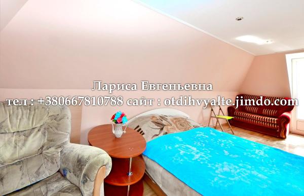 3-х этажн. дом до 3 человек в номере, ул. Садовая, состоящий из 9 видовых номеров, центр Ялты, до набережной 5 мин., до пляжа 10 мин. пешком, прекрасная панорама на море и горы, закрытый бассейн, сауна, массажный кабинет, бильярд, каминный зал, площадка для отдыха с мангалом, кондиционеры, автономное отопление, гор. вода круглосуточно, холодильники, тв. кабельное, Wi-Fi, кухня для самостоятельного приготовления, можно заказать трех разовое питание, парковка во дворе. Цены сезонные-от2000-5500р.сут. За номер На ваши даты цену уточняйте по т+7978-532-7932 -есть Ватсап и телеграм. действующая цена на текущий месяц на моём сайте, возможности торга по телефону или E-mail, цены на праздники уточняйте, подробное описание и другие варианты жилья на сайте: Ялта Лариса Евгеньевна, адрес моего сайта смотри на водяной строке на фотографиях квартиры.