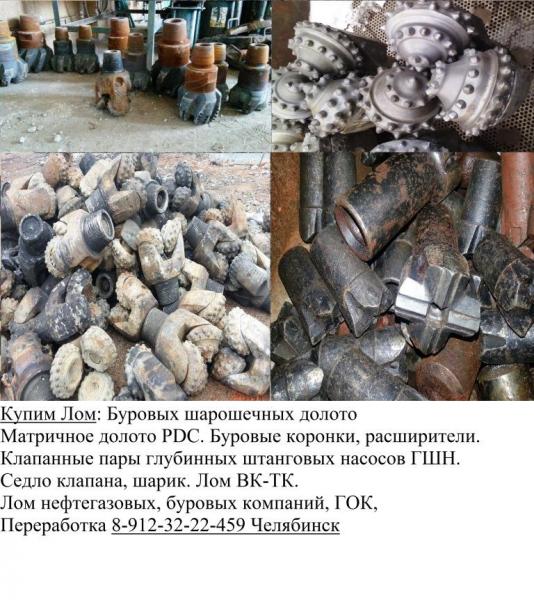 Куплю лом буровых шарошек, лом вк-тк, бурголовки PDC, лом буровых коронок, головки бурильные, расширители. Матричное буровое долото PDC, твердосплавные радиальные опоры, осевые опоры шпинделя, гидромониторные насадки, долото трехшарошечное ткз-пгв. Зубок твердого сплава, лом ВК ТК, втулки, клапана, шарики, гидромониторные насадки Переработка лома с содержанием Вольфрама W от 2%. Стружку, шлам, шлиф отходы, лом р6м5, скрап, scrap.