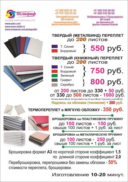 Переплетные работы: Классический книжный твердый, мягкий переплет и брошюровка дипломов, диссертаций, ВКР, проектов, чертежей, отчетов, презентаций. Термопереплет. Металбинд. Сшивка прошивка.