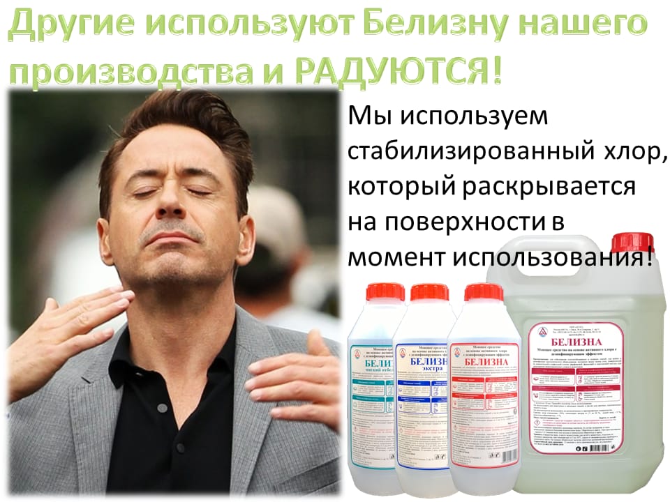 Наша белизна - это новый уровень дезинфекции! Благодаря стабилизированному хлору, активные вещества начинают действовать только при контакте с обрабатываемой поверхностью, что обеспечивает целенаправленное и эффективное очищение. Эта технология позволяет минимизировать неприятный запах хлора в воздухе и избежать раздражения слизистых носа и глаз. Почувствуйте разницу с нашей безопасной и мощной белизной! Белизна Мягкий отбеливатель 1%, 1л - 33 руб Белизна 2%, 1л - 39 руб. Белизна Экстра 5%, 1л - 52 руб. Белизна 2%, 5л - 165 руб.