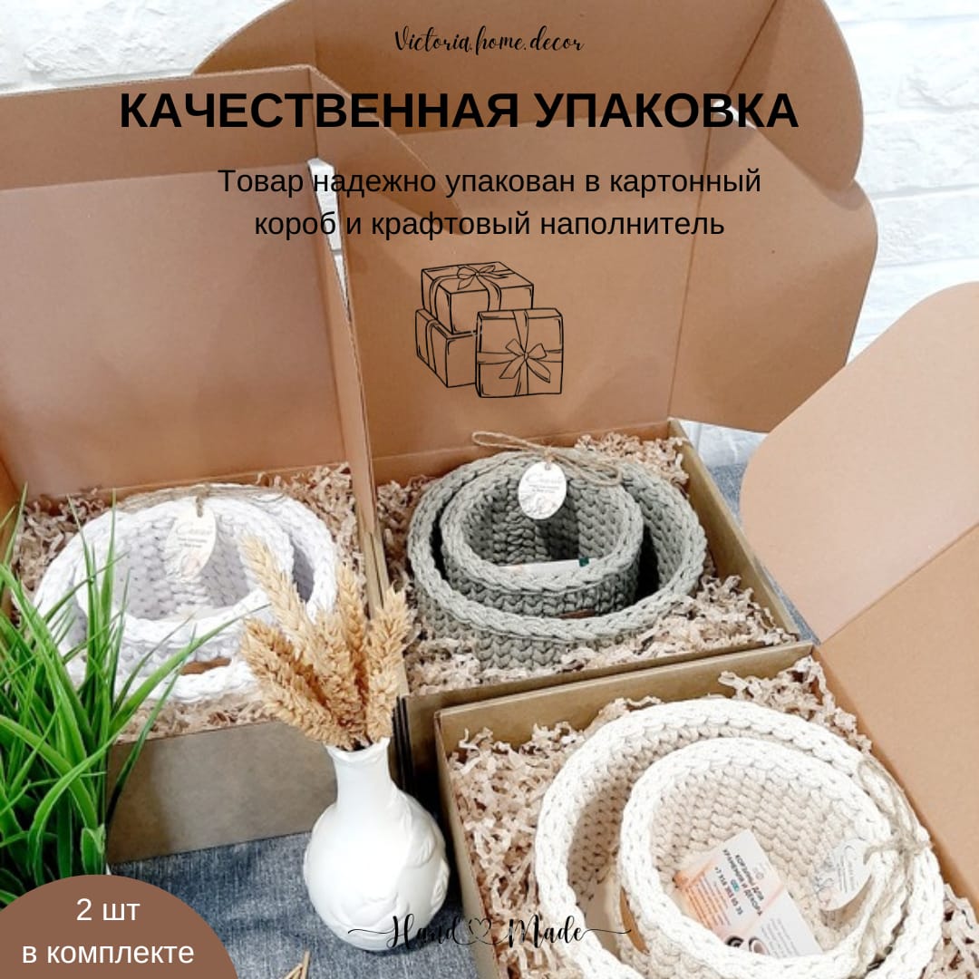 Набор вязаных корзин - идеальный подарок маме, бабушке, сестре, любимой девушке, подруге, коллеге, учителю или воспитателю.