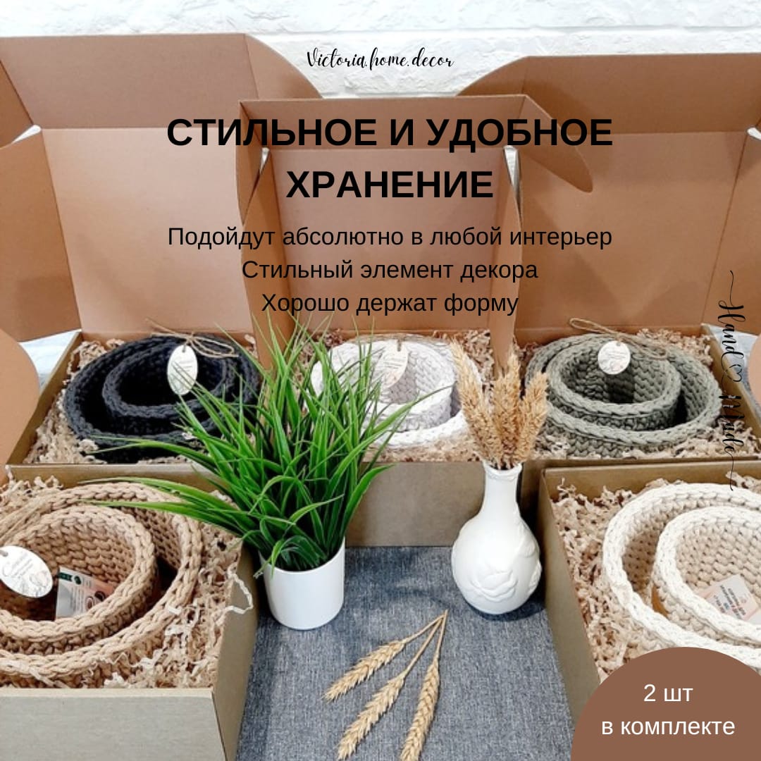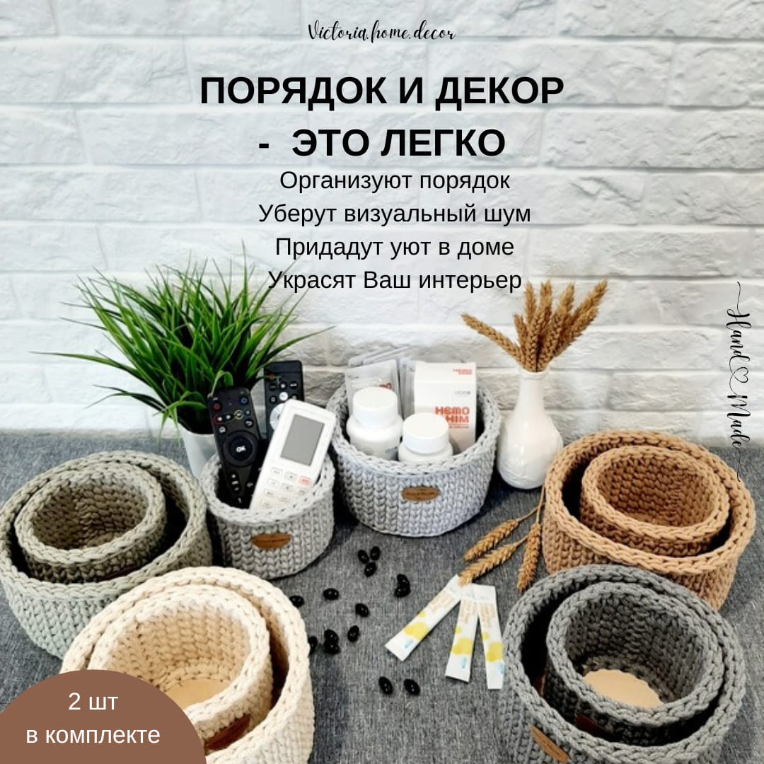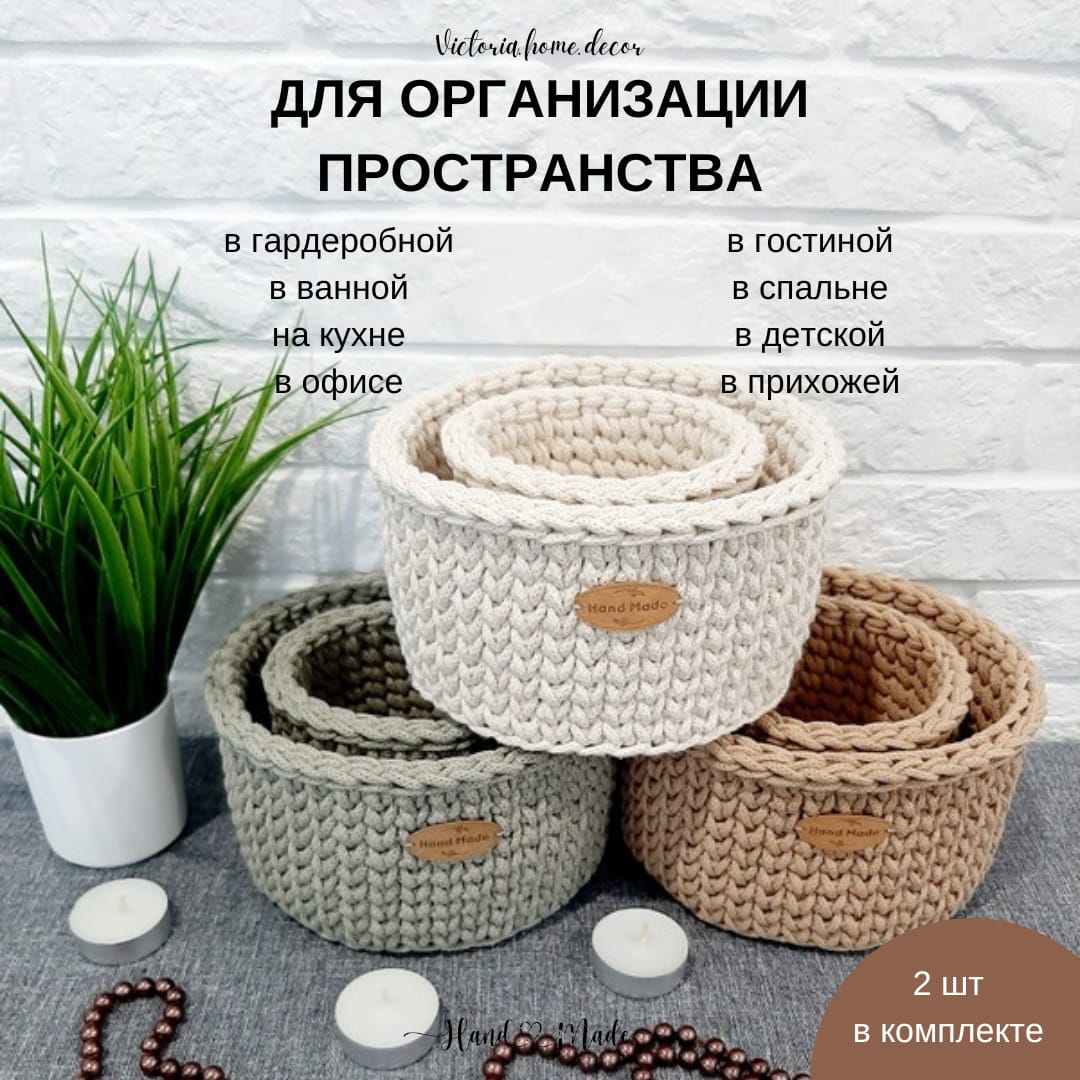 Вязаные корзины ручной работы - это уже тренд, полезный и стильный аксессуар для порядка и декора интерьера. Идеально подходят для хранения самых разнообразных вещей, помогая Вам поддерживать уют в доме.