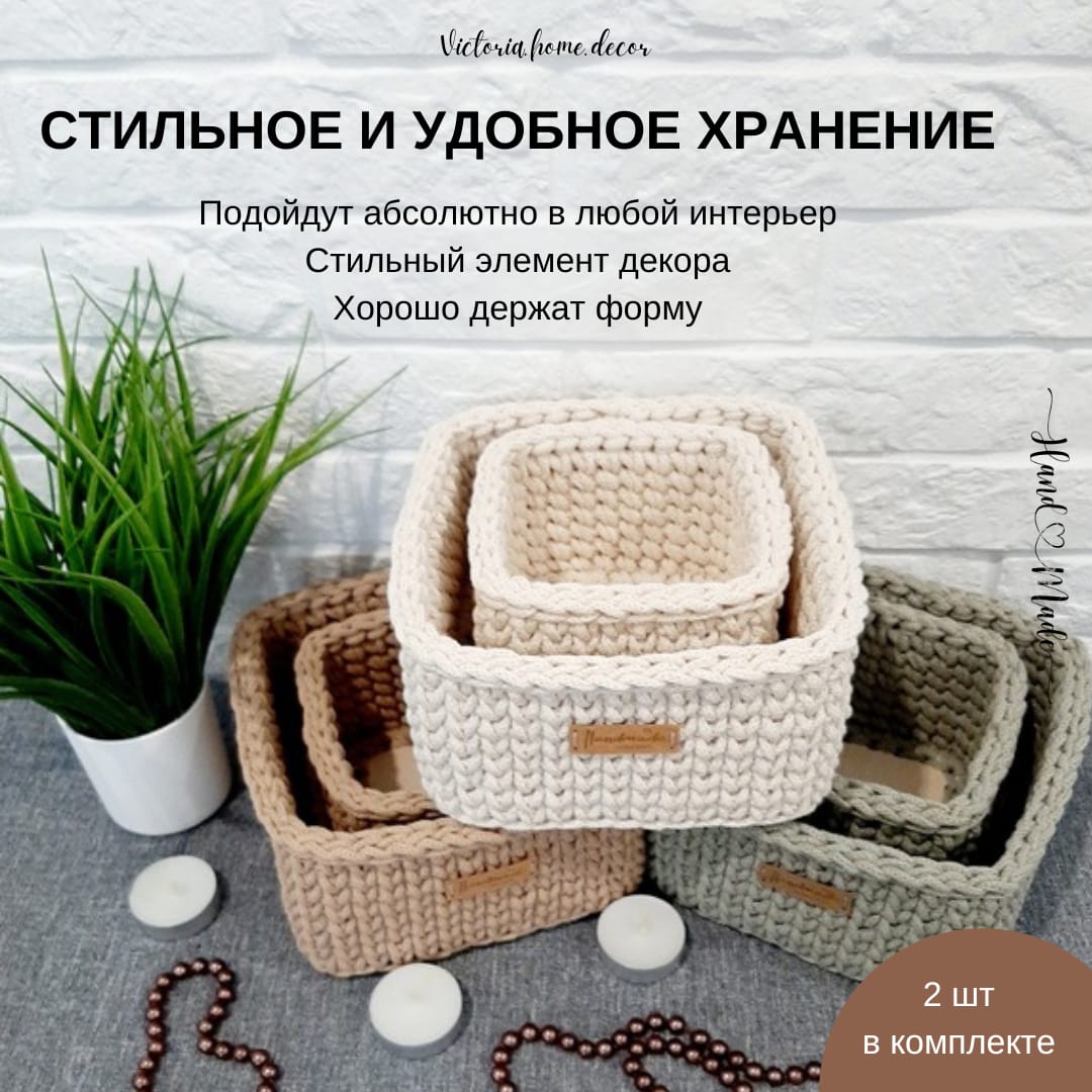 Интернет-магазин товаров для дома и подарков ручной работы https://www.ozon.ru/seller/victoria-home-decor-2473760 Ищите оригинальный и необычный подарок? Да такой, чтоб впечатлить и удивить? Тогда подарочный набор ручной работы "Комплемент 4 в 1" - это то, что Вам нужно. Вязаные изделия ручной работы - это уже тренд, оригинальные, полезные и стильные аксессуары. Подобные подарочные наборы не найти в магазинах, ведь каждый из них уникален и неповторим. И как показала практика, их очень любят дарить и получать в качестве подарка на День рождение, День матери, Рождество и Новый год, 8 марта, новоселье или просто, как комплимент. В наборе: - керамическая кружка 330 мл; - вязаная подставка под кружку; - вязаная корзинка с деревянным донышком; - обвес/брелок/подвеска. Цвет: оливковый/белый Оттенок может немного отличаться из-за настроек экрана и партии материала. Стенки корзинки и подсвечника плотные, прекрасно держат форму. Состав: экологичный регенерированный хлопок, шлифованное гладкое донышко из березовой фанеры. Обратите внимание, что каждое изделие связано вручную, и допустима погрешность в +/- 0,5 см. Набор "Комплемент 4 в 1" - идеальный подарок маме, бабушке, сестре, любимой девушке, подруге, коллеге, учителю или воспитателю. Набор упакован с любовью и вниманием к деталям, что делает его идеальным подарком для любого случая. ДОСТАВКА: Доставка по всей России. ПОСМОТРЕТЬ АКТУАЛЬНУЮ ЦЕНУ И ЗАКАЗАТЬ СО СКИДКОЙ: https://www.ozon.ru/seller/victoria-home-decor-2473760