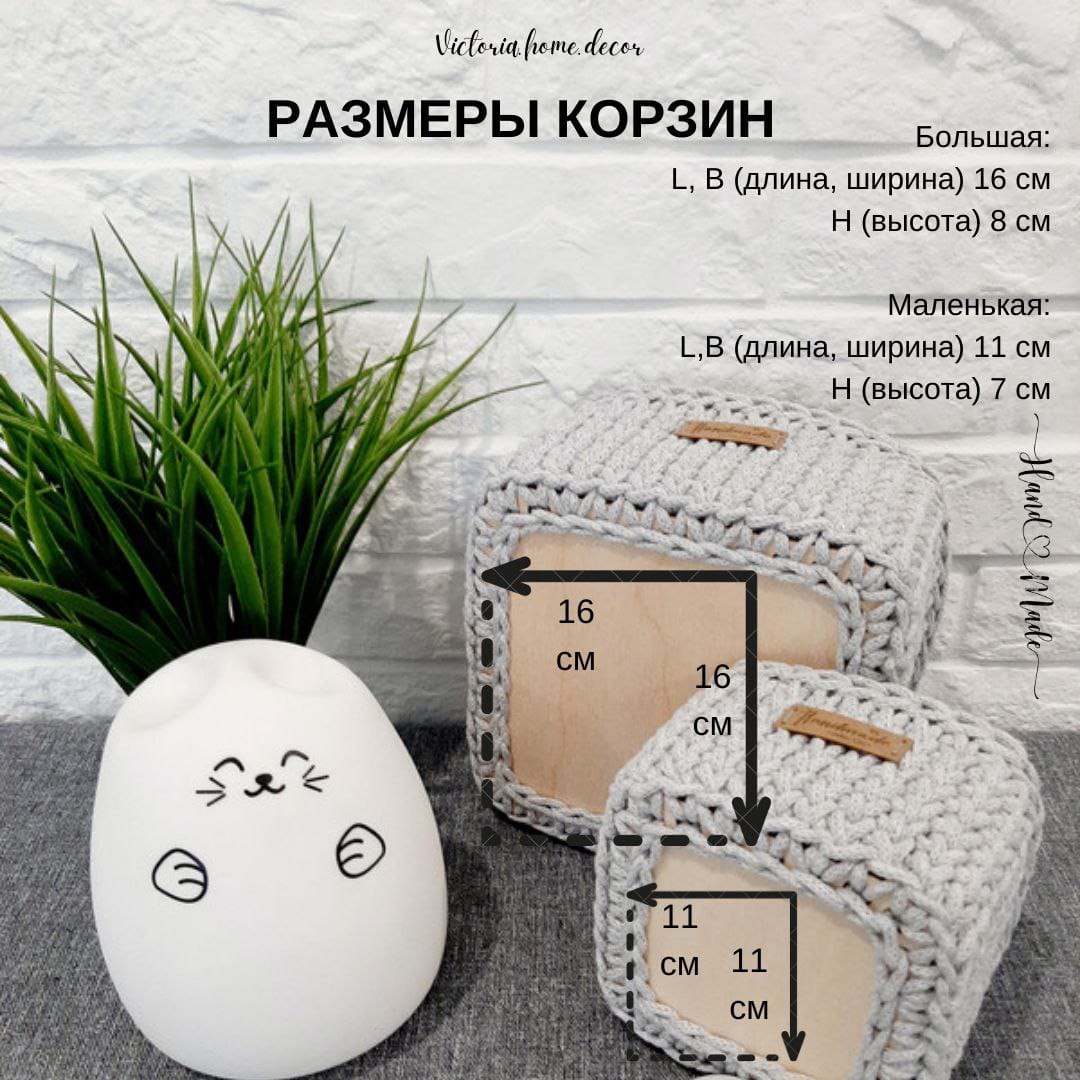Обратите внимание, что каждая корзина связана вручную, и допустима погрешность в +/- 0,5 см.