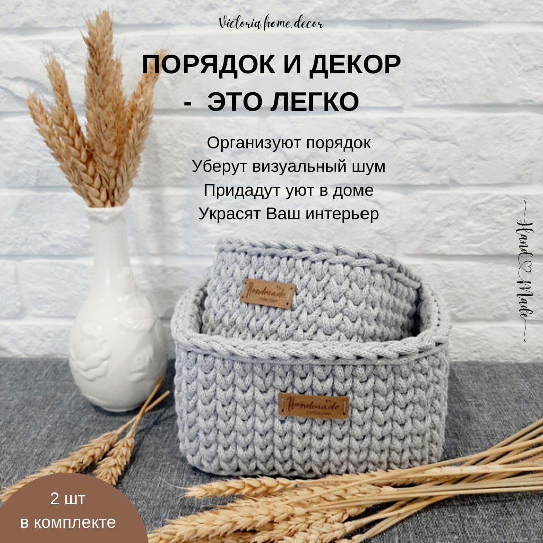 Интернет-магазин товаров для дома и подарков ручной работы https://www.ozon.ru/seller/victoria-home-decor-2473760 Ищите оригинальный и необычный подарок? Да такой, чтоб впечатлить и удивить? Тогда подарочный набор ручной работы "Комплемент 4 в 1" - это то, что Вам нужно. Вязаные изделия ручной работы - это уже тренд, оригинальные, полезные и стильные аксессуары. Подобные подарочные наборы не найти в магазинах, ведь каждый из них уникален и неповторим. И как показала практика, их очень любят дарить и получать в качестве подарка на День рождение, День матери, Рождество и Новый год, 8 марта, новоселье или просто, как комплимент. В наборе: - керамическая кружка 330 мл; - вязаная подставка под кружку; - вязаная корзинка с деревянным донышком; - обвес/брелок/подвеска. Цвет: оливковый/белый Оттенок может немного отличаться из-за настроек экрана и партии материала. Стенки корзинки и подсвечника плотные, прекрасно держат форму. Состав: экологичный регенерированный хлопок, шлифованное гладкое донышко из березовой фанеры. Обратите внимание, что каждое изделие связано вручную, и допустима погрешность в +/- 0,5 см. Набор "Комплемент 4 в 1" - идеальный подарок маме, бабушке, сестре, любимой девушке, подруге, коллеге, учителю или воспитателю. Набор упакован с любовью и вниманием к деталям, что делает его идеальным подарком для любого случая. ДОСТАВКА: Доставка по всей России. ПОСМОТРЕТЬ АКТУАЛЬНУЮ ЦЕНУ И ЗАКАЗАТЬ СО СКИДКОЙ: https://www.ozon.ru/seller/victoria-home-decor-2473760