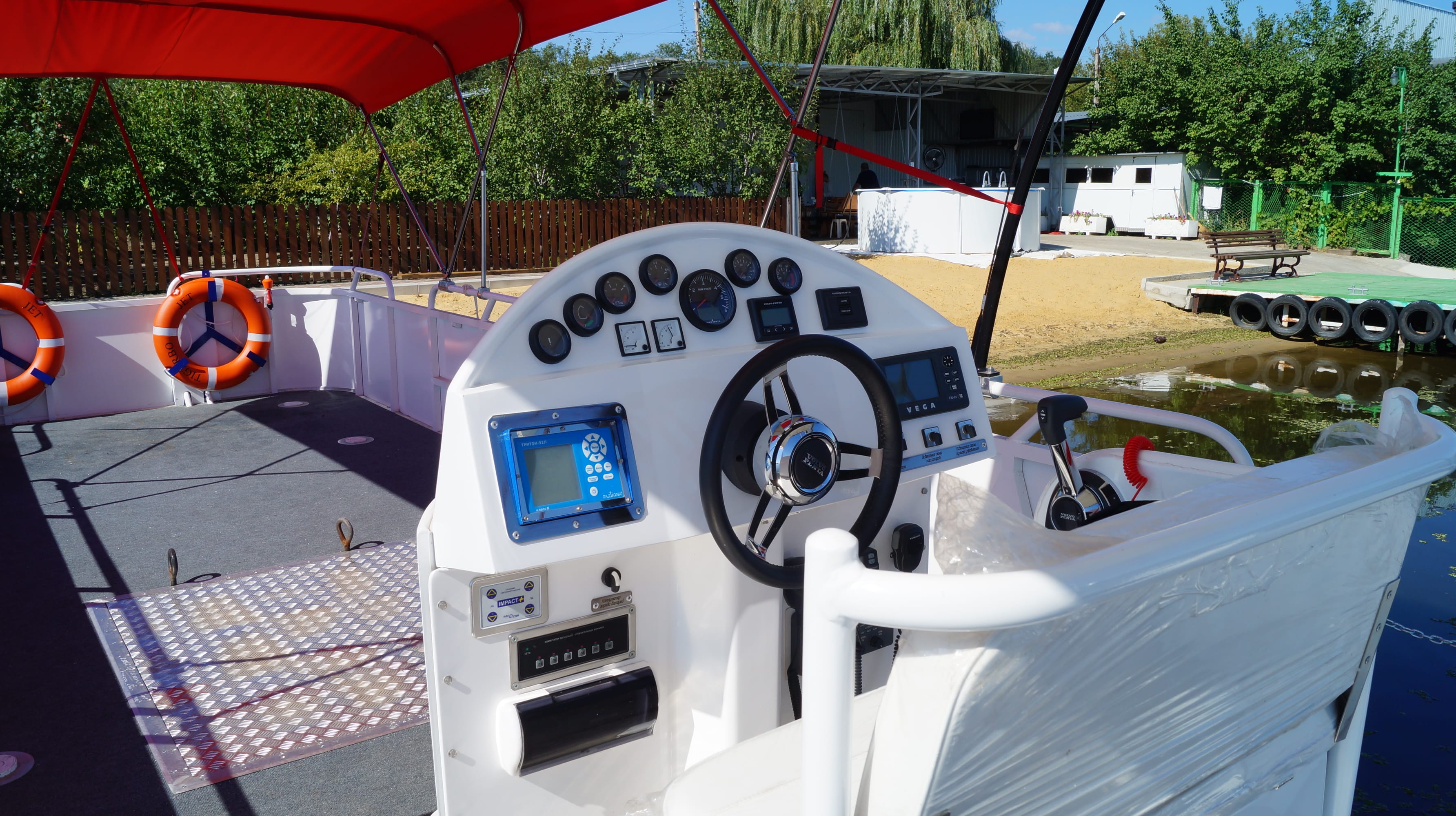 Моторный катамаран TIGARBO является необходимым оборудованием для организации туристических и морских прогулок, различных экскурсий, рыбалки и отдыха на воде. Кроме того, это прекрасное решение для организации плавучего кафе или ресторана. Даже для строительства различных сооружений на воде, временных причалов, эта продукция станет незаменимым помощником. Моторный катамаран TIGARBO может эксплуатироваться в условиях умеренного климата в пресных водоемах, на внутренних водных несудоходных путях. Описание салона: - катамаран укомплектован пассажирскими сиденьями - палуба судна застелена ковровым покрытием на резиновой основе - в носовой части расположены ходовые огни, позволяющие эксплуатировать катамаран в темное время суток, и воздушный звуковой сигнал - для удобства водителя предусмотрено складывающееся кресло и функциональный руль
