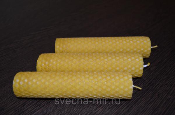 Свеча восковая " Желтая " № 80, фасовка 0,5 кг. (100 шт.) Изготовлены из 100% натурального пасечного воска . Цвет: Желтый В качестве основы фитильных нитей мы используем хлопок. Производитель: Собственное производство Страна производитель: Россия Время горения: 1 час Материал изготовления: Пчелиный воск Диаметр свечи: 6 мм Вес свечи: 5 г Вид свечи: Церковная/ритуальная Цвет: Желтый Цена 600 руб. / упаковка