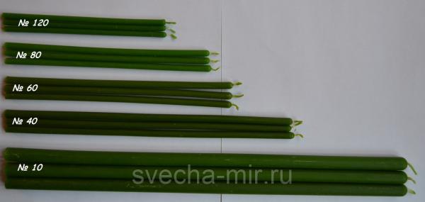 Свеча восковая " Зеленая " № 80 ( время горения 1 ч 00 мин )