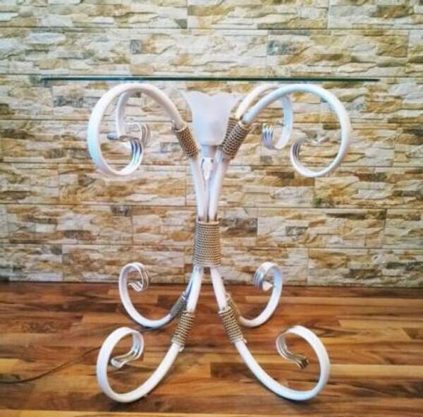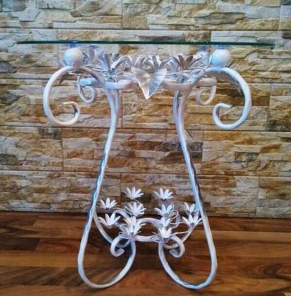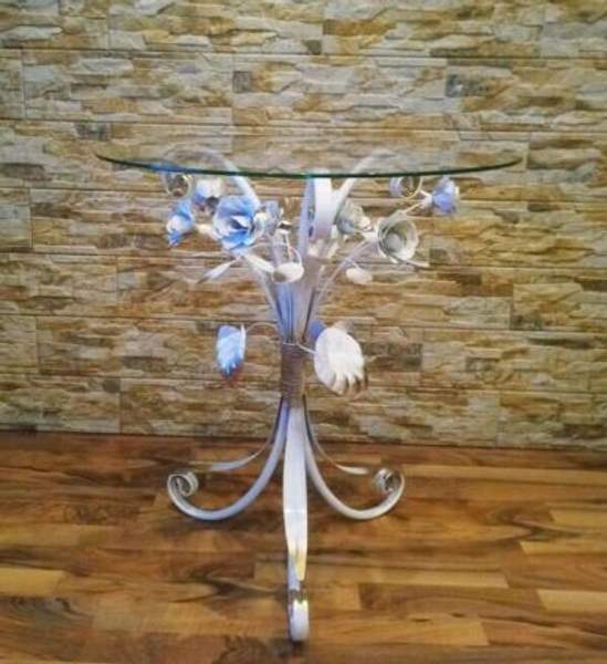 Кованый журнальный столик в стиле флористика от компании Brisk Light. Декорирован коваными розами и листьями. Общее: * Артикул: C 113/1 WН * Производитель: Brisk Light Размеры: * Высота: 65 см * Диаметр столешницы: 60 см Цвет и материал: * Цвет: Белый, серебро * Материал: Кованый металл * Столешница: Стекло полированное Технические характеристики: * Тип цоколя: Е-14 * Общая мощность: 60 W * Мощность лампы: 60 W * Количество ламп: 1 штПроизводитель: Собственное производство Тип: Столик журнальный Форма столешницы: Круглая Тип опор: Ножки Цвет: Белый|золотой Материал столешницы: Стекло Материал каркаса, ножек: Кованый металл Особенности конструкции: Без особенностей Ширина (см): 60 Высота (см): 65 Глубина (см): 60 Регулировка высоты столика: Нет Регулировка размера столешницы: Да Наличие декоративной подсветки: Да Принт: Без принта Особенности цвета: Глянцевый|градиент Состояние: Новый