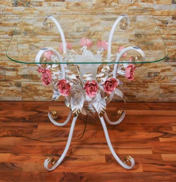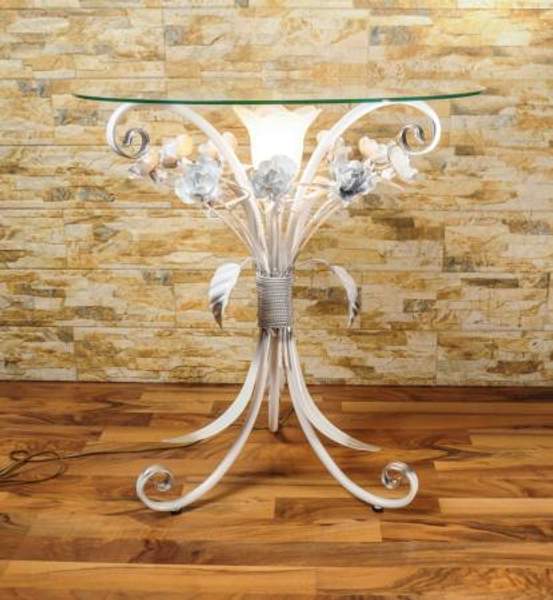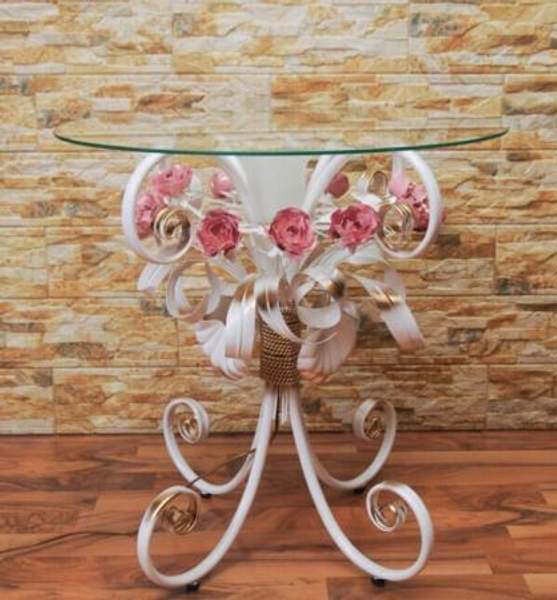 Декорирован коваными розами и листьями. Сетевой шнур с удобным ножным выключателем. Возможно производство под заказ. Любой цвет и размер. Общее: Артикул: C 107/1 WR Производитель: Brisk Light Размеры: Высота: 60см Диаметр столешницы: 60см Цвет и материал: Цвет: Белый, розовый, золото Материал: Кованый металл Столешница: Стекло полированное Технические характеристики: Тип цоколя: Е-14 Общая мощность: 60 W Мощность лампы: 60 W Количество ламп: 1 шт Дополнительные характеристики: Цвет (оттенок) мебели Розовый Страна производитель РоссияПроизводитель: Собственное производство Тип: Столик журнальный Форма столешницы: Круглая Тип опор: Ножки Стиль: Итальянский Цвет: Белый|золотой|розовый Материал столешницы: Стекло Материал каркаса, ножек: Кованый металл Особенности конструкции: Стандартная конструкция Ширина (см): 60 Высота (см): 60 Глубина (см): 60 Регулировка высоты столика: Нет Регулировка размера столешницы: Нет Наличие декоративной подсветки: Да Принт: Без принта Особенности цвета: Белый|блестящий|глянцевый|градиент|двухцветный Состояние: Новый Состояние: Новое Гарантийный срок: 12 мес Столешница: Металл