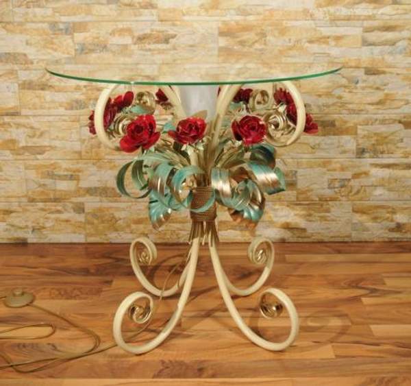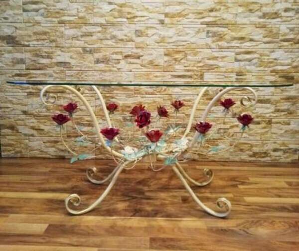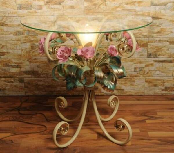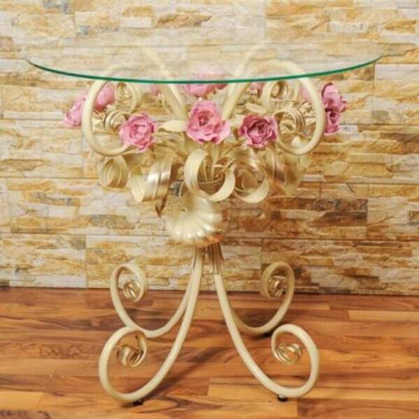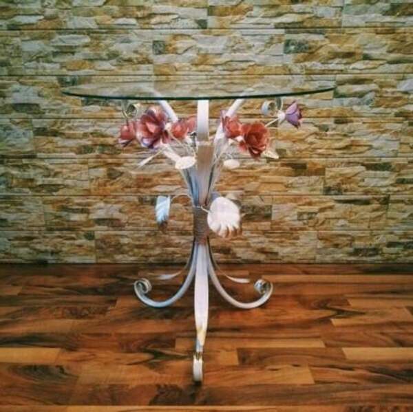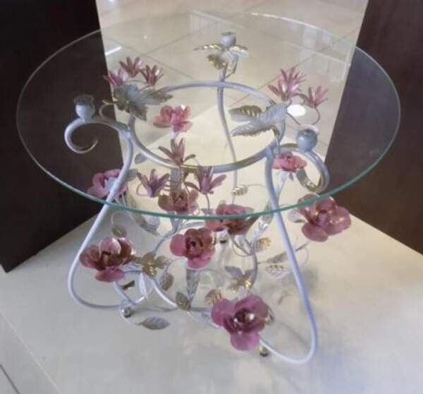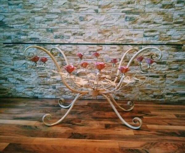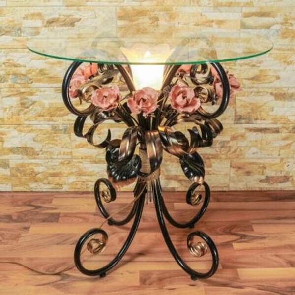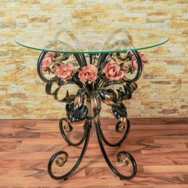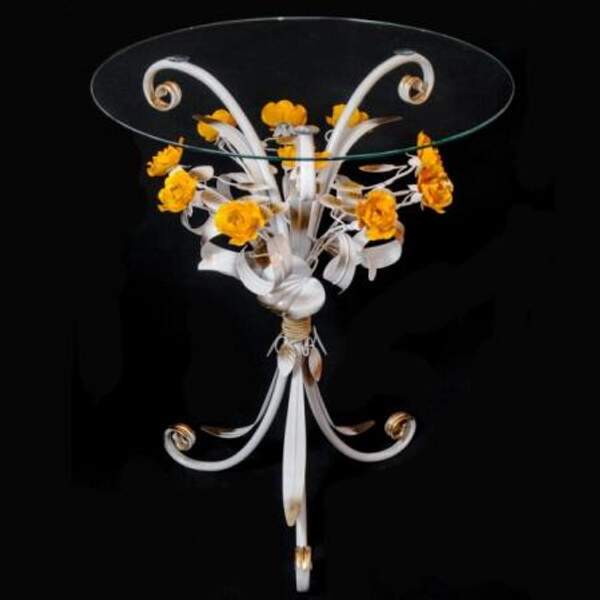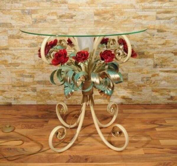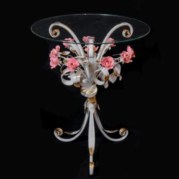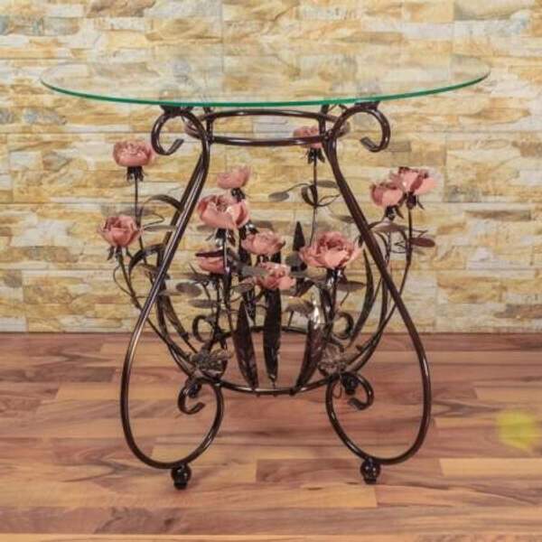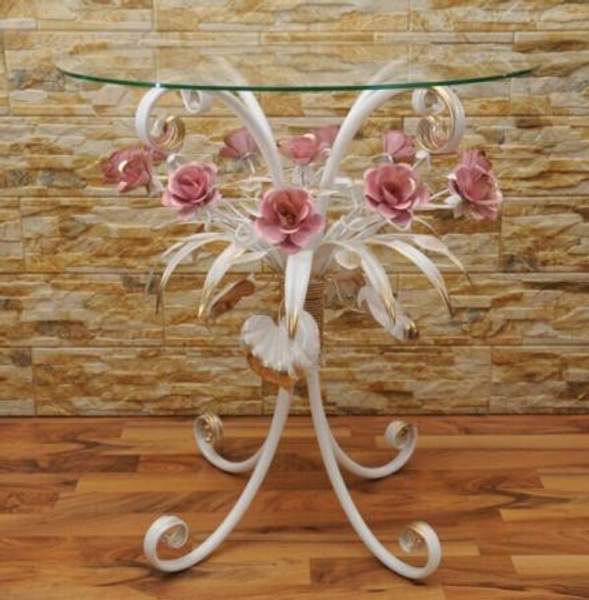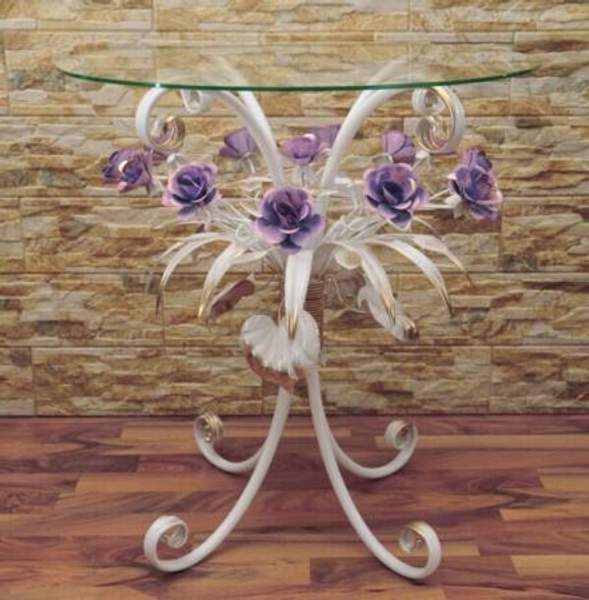 Кованый журнальный стол с розовыми розами С 1515 TR