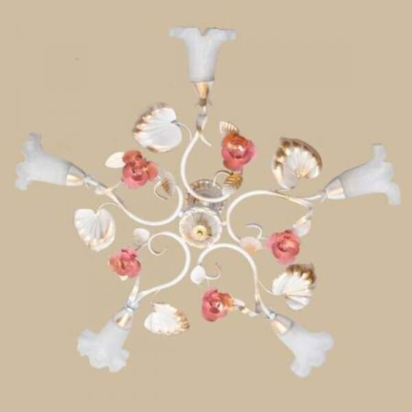 Люстра белая с розовыми розами на пять плафонов 172/5 WR