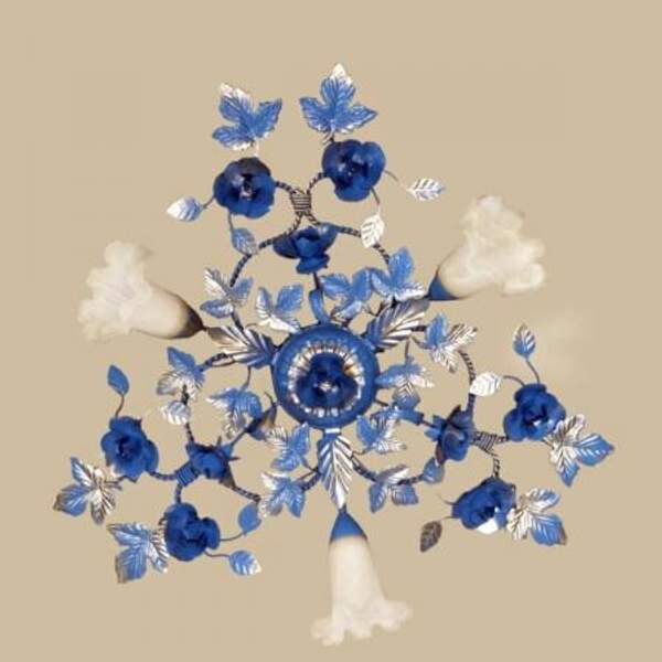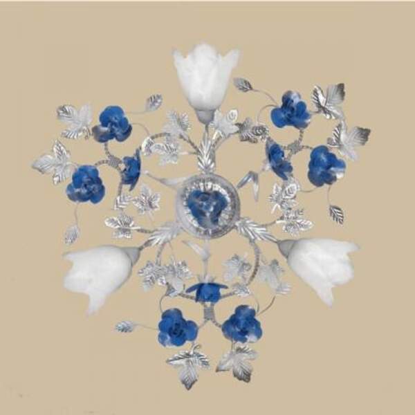 Люстра белая с серебром и с синими розами 04545/3 WL