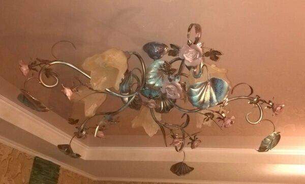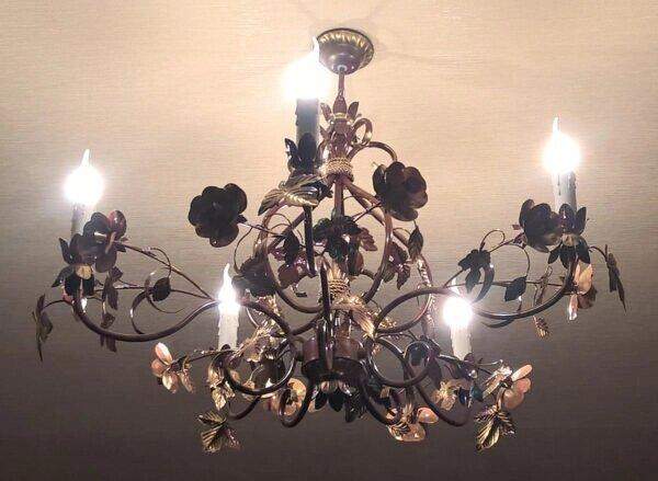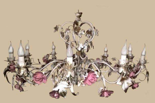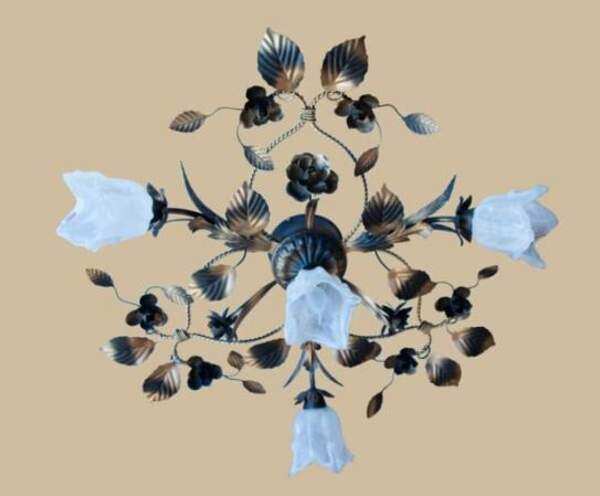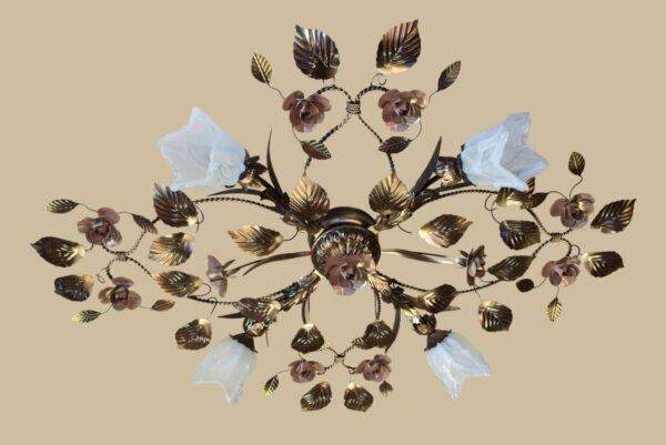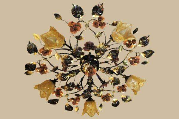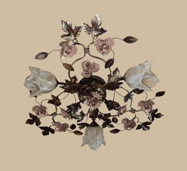 Люстра флористика с коваными розами и листьями 525/3 С