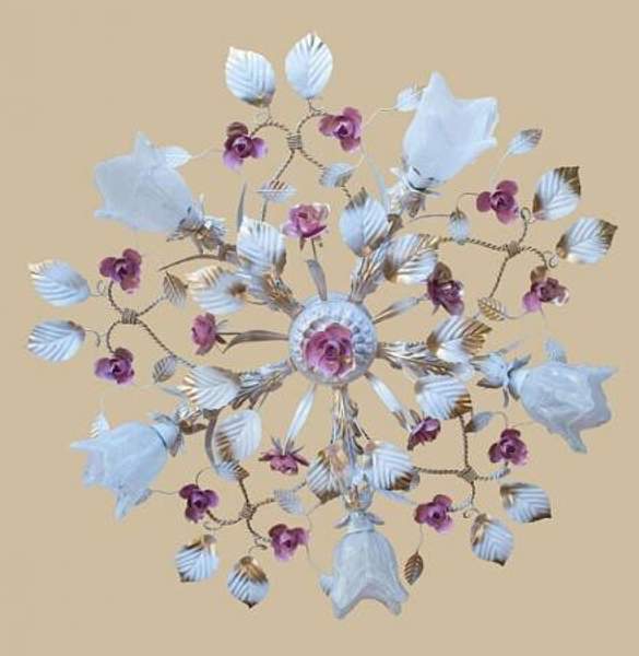 Белая люстра с розовыми розами 4525/4 WR