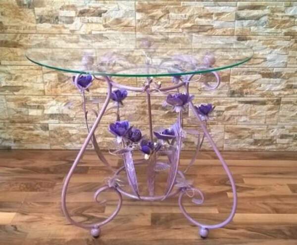 Декорирован коваными розами и листьями. Общее: Артикул: C 204 PV Производитель: Brisk Light Размеры: Высота: 60 см Диаметр столешницы: 60 см Цвет и материал: Цвет: Вересковый, сиреневый, золото Материал: Кованый металл Столешница: Стекло полированноеПроизводитель: Собственное производство Тип: Столик журнальный Форма столешницы: Круглая Тип опор: Ножки Стиль: Итальянский Цвет: Золотой|сиреневый Материал столешницы: Стекло Материал каркаса, ножек: Кованый металл Особенности конструкции: Без особенностей Ширина (см): 60 Высота (см): 60 Глубина (см): 60 Регулировка высоты столика: Нет Регулировка размера столешницы: Нет Наличие декоративной подсветки: Нет Принт: Без принта Особенности цвета: Блестящий|глянцевый|градиент Состояние: Новый