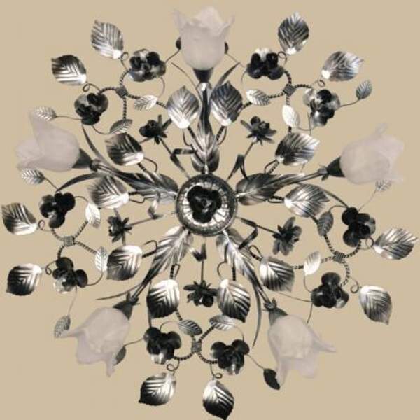 Декорирована коваными розами и листьями. Отлично подходит для невысоких потолков. Общее: Артикул: 4525/4 ВН Производитель: Brisk Light Размеры: Диаметр: 1250 мм (125 см) Высота: 200 мм (20 см) Технические характеристики: Количество ламп: 4 шт Мощность лампы: 60 W Общая мощность: 240 W Тип цоколя: Е-14 Цвет и материал: Цвет плафонов: Белый матовый с белым алебастром Цвет арматуры: Чёрный, серебро Материал плафонов: Стекло Материал арматуры: Металл Дополнительные характеристики: Материал каркаса металл Страна производитель Россия Тип лампы Накаливания Мощность лампы 60 Вт Тип цоколя E14 Стиль исполнения Флористика Другой тип лампы Энергосберегающая Материал плафона, подвесок Cтекло алебастр Количество источников света 4 Люстра-вентилятор НетПроизводитель: Собственное производство По типу крепления: Припотолочные Количество ламп: 4 Тип лампочки: Светодиодная (led) Материал: Кованный металл Маркировка цоколя: E14 Мощность (Вт): 240 Цвет: Черный Принт: Без принта Лампочки в комплекте: Нет Напряжение сети: 220~240 В Тип выключателя: Настенный Цвет арматуры (основания): Черный Цвет свечения: Белый Особенности: Без особенностей Назначение: В гостиную|в детскую|в прихожую|в спальню Стиль: Флористика Особенности цвета: Глянцевый|градиент Состояние: Новый Состояние: Новое Покрытие: Серебро