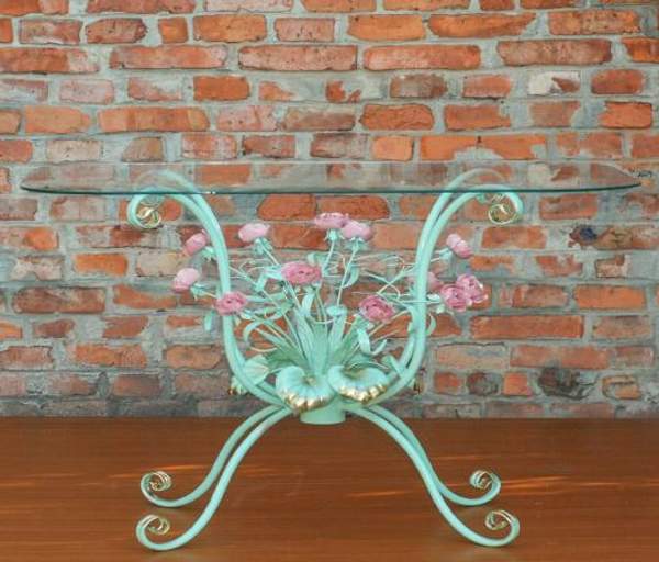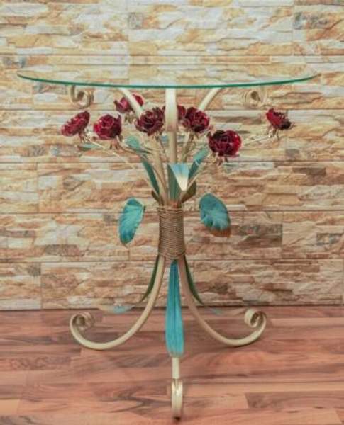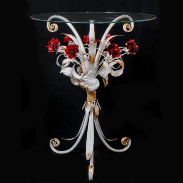 Стол журнальный с патиной и красными розами С 1506 TIK