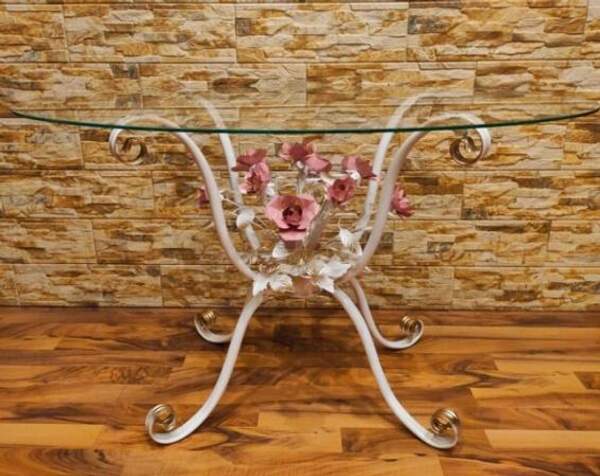 Стол обеденный кованый с розовыми розами С 1506-75 ОR