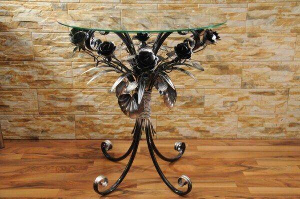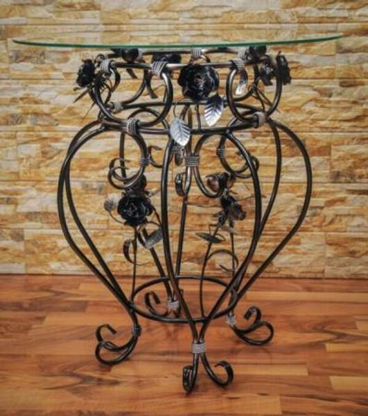 Стол журнальный чёрный с коваными розами С 107 ВС